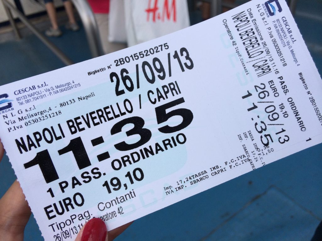 ナポリからカプリ島へは11:35発 19€(2013年9月時点)でした。