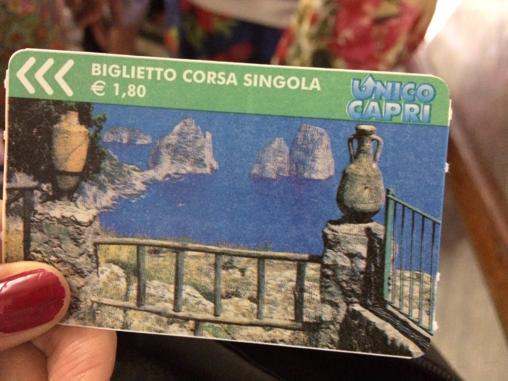 カプリ島は山のような地形のため、メインエリアへ行くには山を登ることになり、ケーブルカーを使って行きます。荷物が多いので、チェックインと昼食をとるためにまず使用しました。