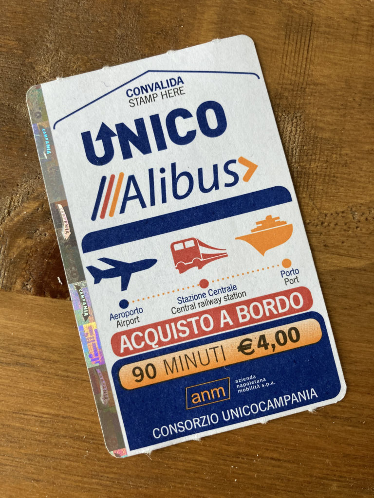 空港の売店かバスで買うことができます。チケットを通してから90分有効なチケットで4€でした。