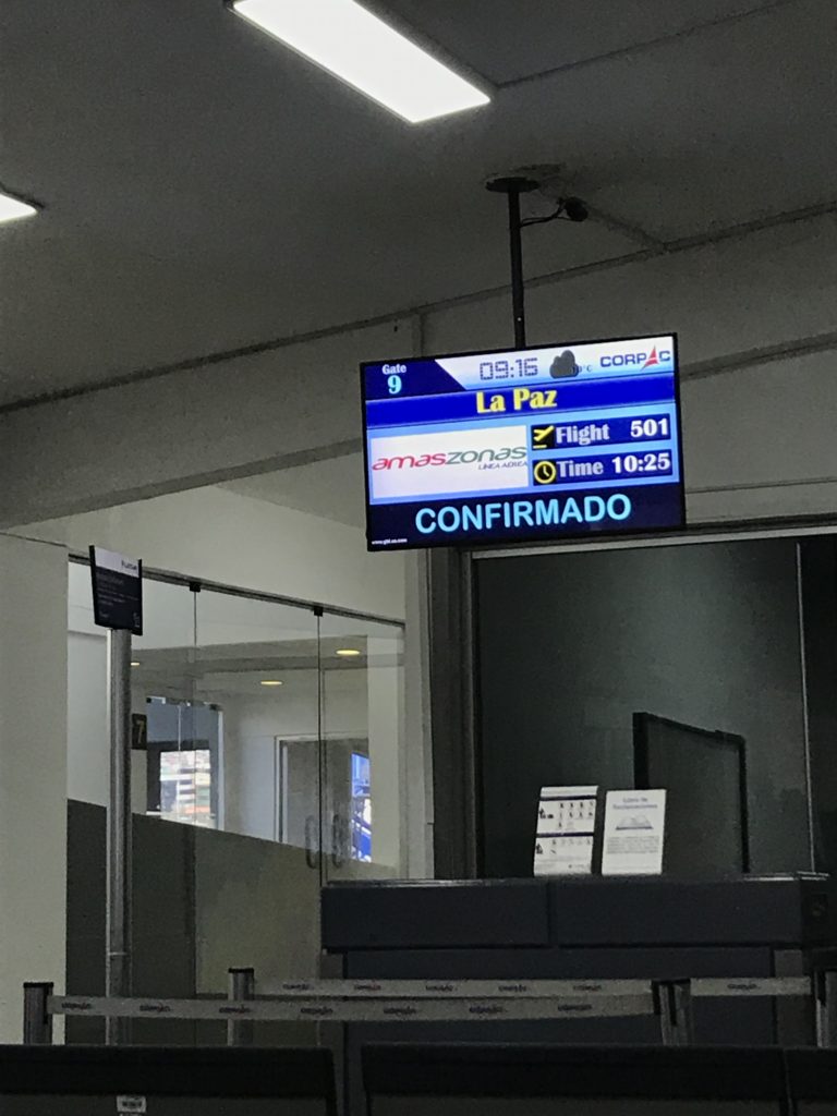 クスコ→ラパスのオーバーブッキングの心配もあったので、ボリビアーノのスタッフに一応確認をすると、国内線は1時間半前から手続きするよと特にこれといったこともなく、