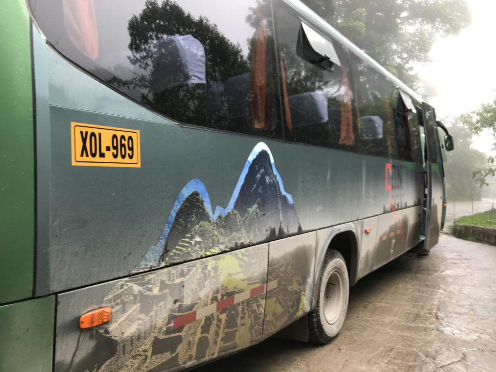 マチュピチュ駅からは、バスで山の上にある遺跡まで行きます。山道をバスで駆け上がるので、どんどん標高が上がっていきます。マチュピチュ村がどんどん遠くに見えます。バスはツアー代金込でしたが、2人で往復24$でした。