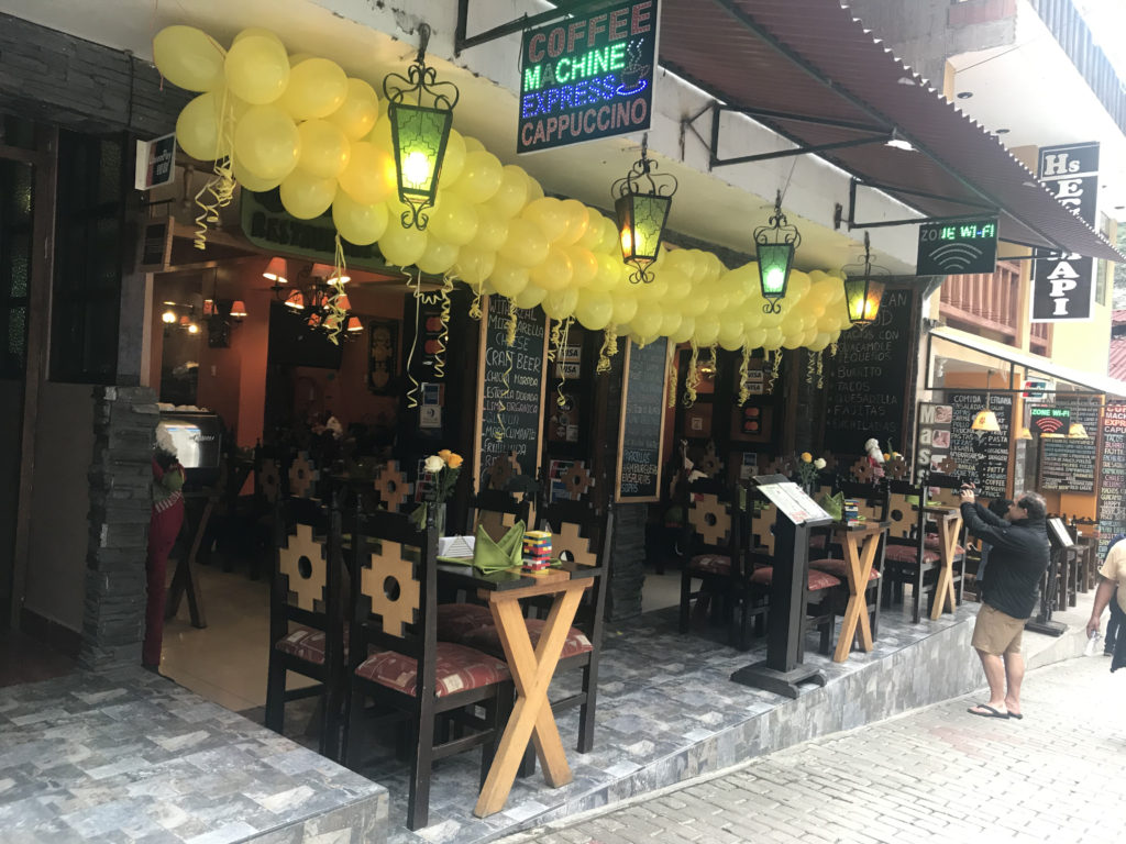 バスで下山して、帰りの列車まではマチュピチュ村で自由行動でした。お昼を食べました。地球の歩き方に載っていたお店に入りました。