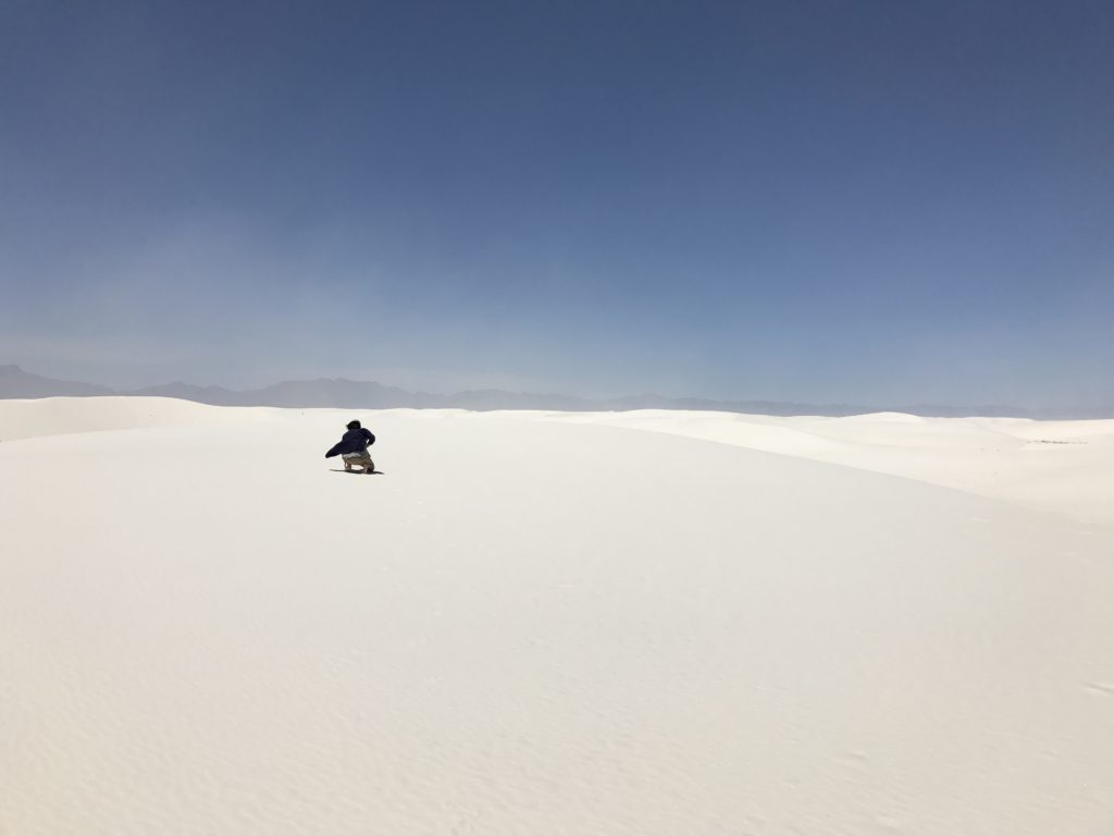 ニューメキシコ州にあるホワイトサンズ国立公園です。名前の通り白い砂丘が500㎢に渡り続いております。私は以前書籍でこの景色を見て、世界にこんなところがあるのかと驚きました。